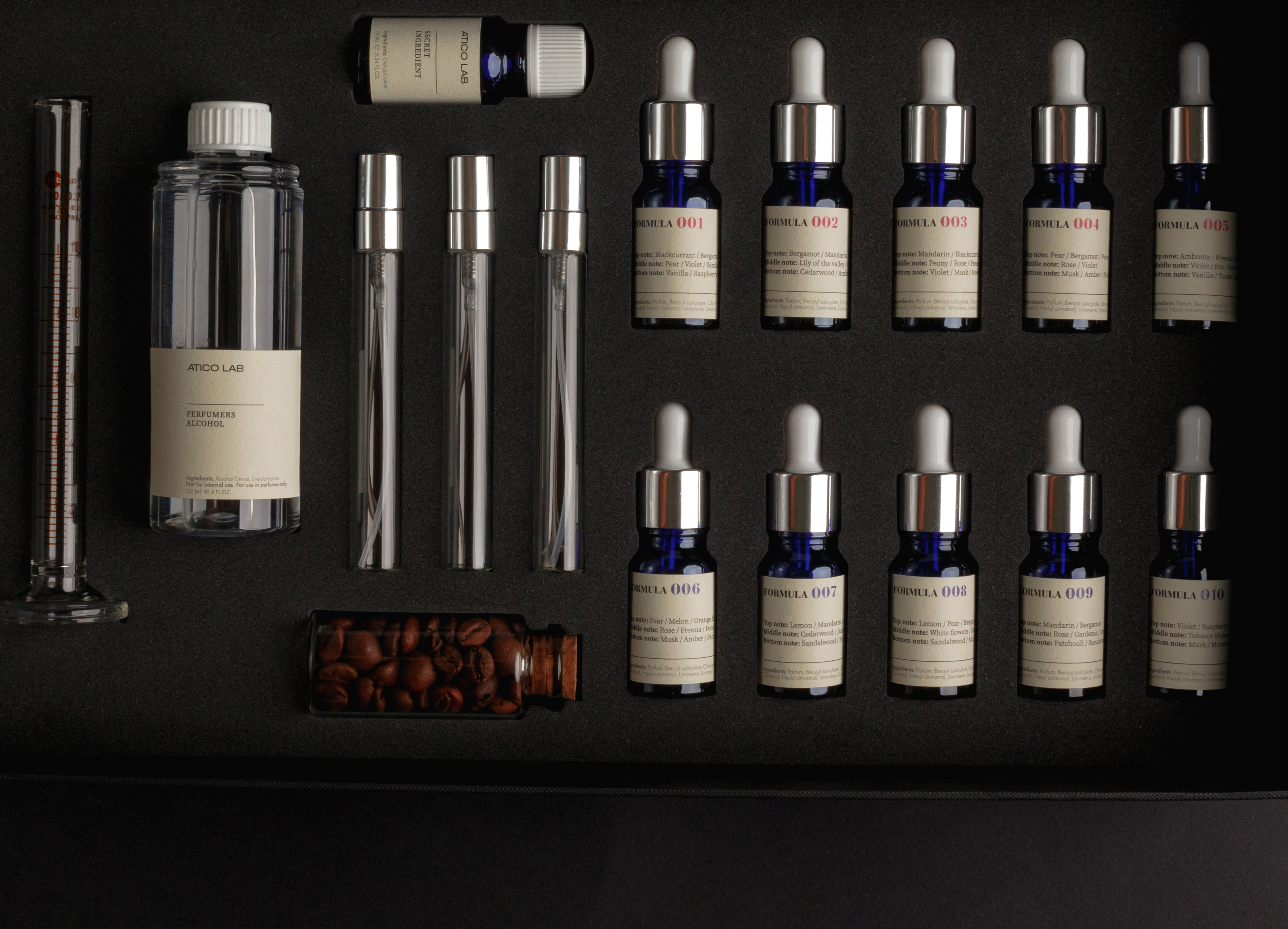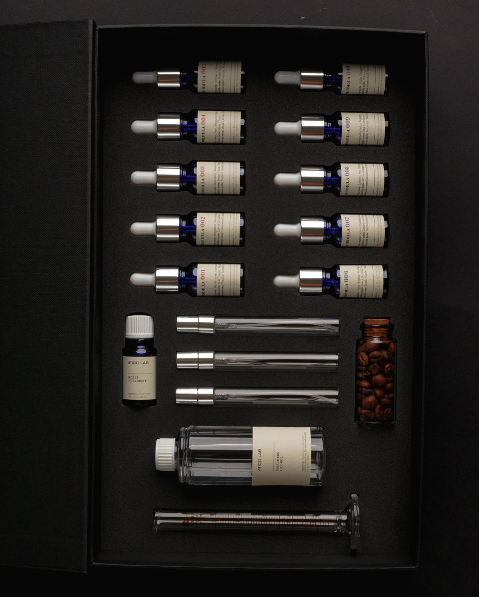 The “Do It Yourself Perfumer” set includes everything you need to get started: perfume ingredients and a diary where you can write down your favorite combinations.